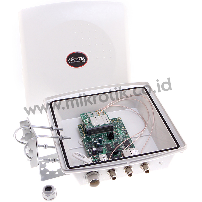 Routerboard RB433 (300MHz Atheros CPU, 64MB DDR RAM, 64MB NAND Storage) dengan RouterOS (Level 4 CF) dalam kemasan kotak outdoor, dengan 1 (satu) ethernet insulator untuk port ethernet 10/100 dan tiga buah wireless minipci. Sudah termasuk 1 buah adaptor 24 Volt.